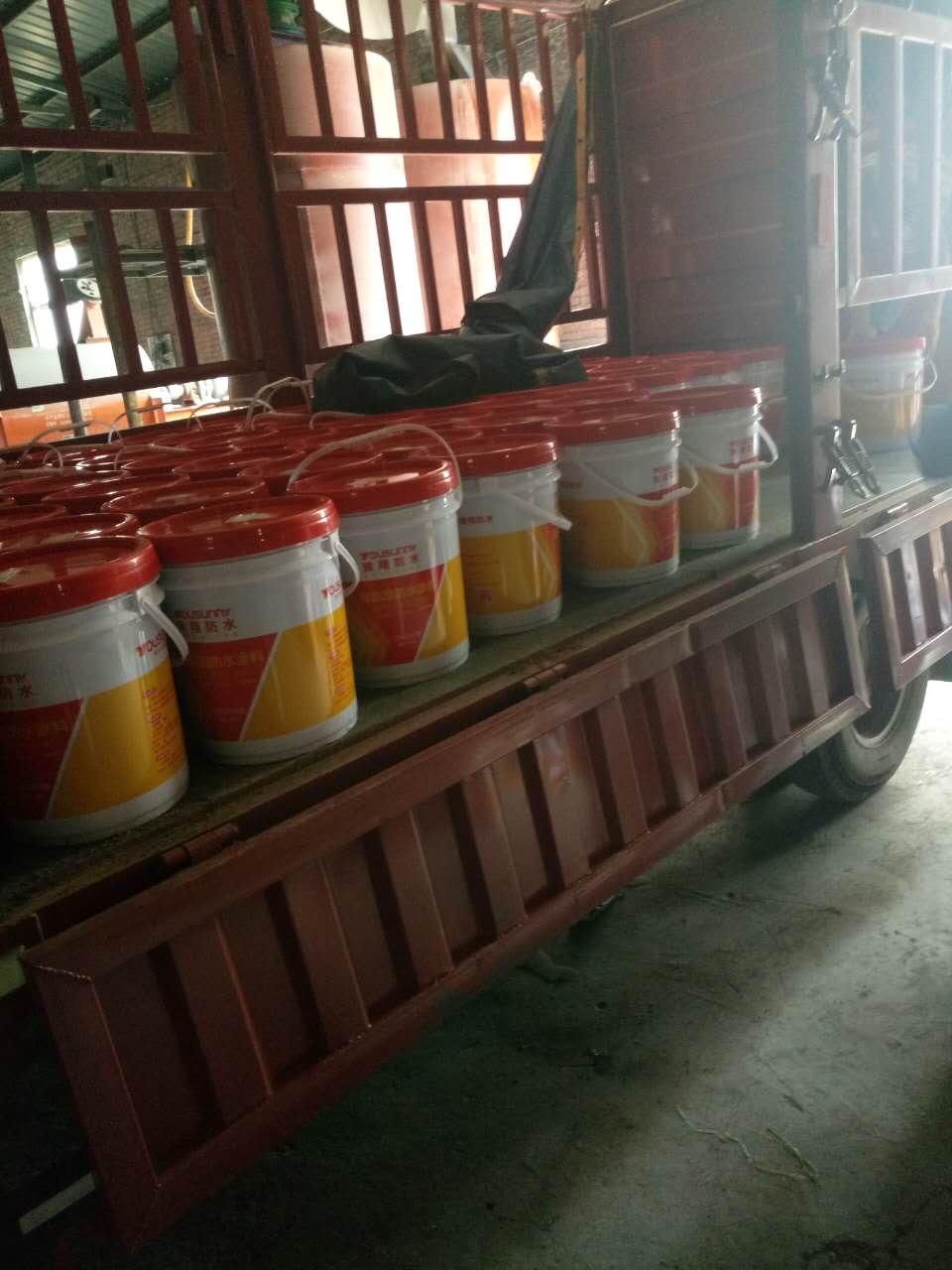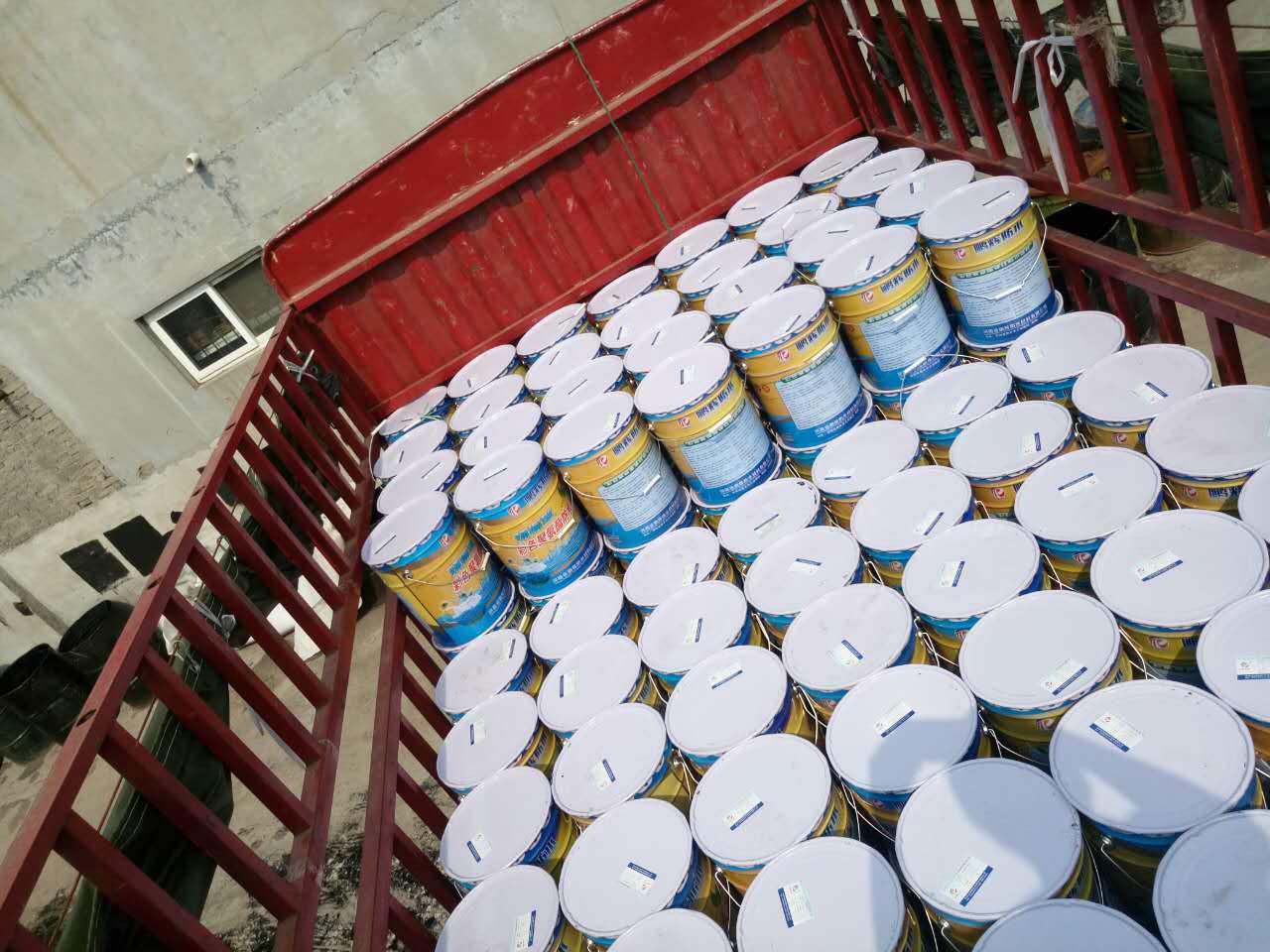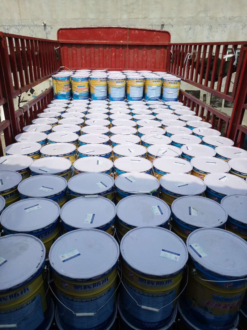 發往臨潁的十二噸水性聚氨酯和邯鄲的兩噸水性聚氨酯防水涂料同時裝車
